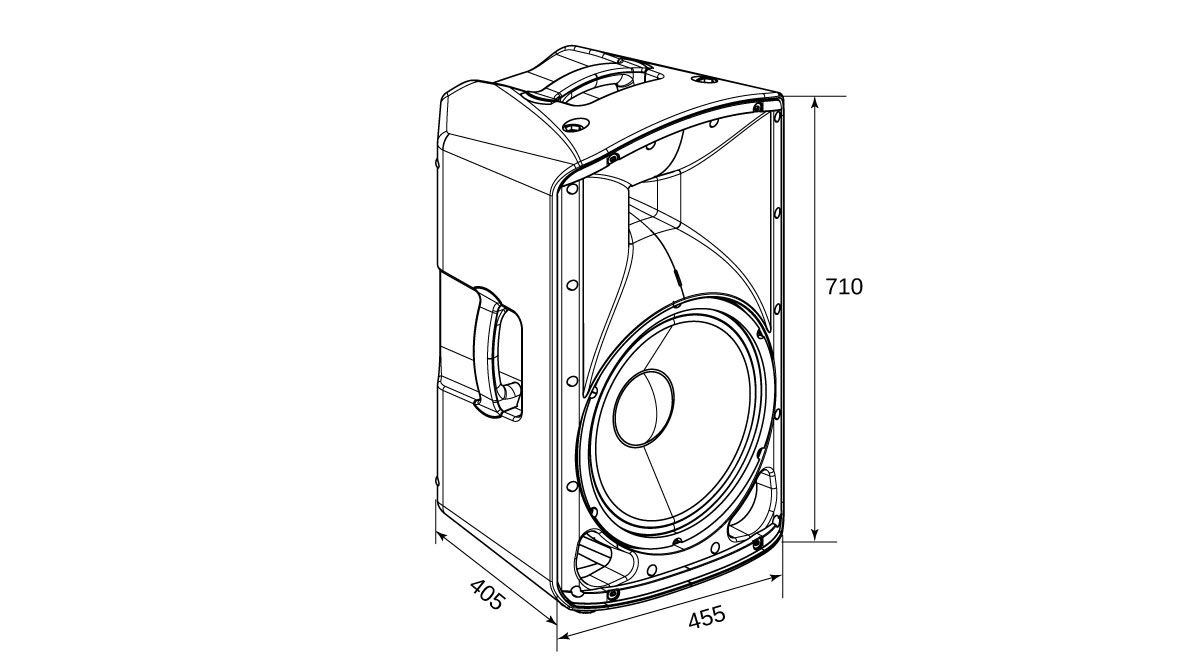 Thùng loa được chế tạo bằng công nghệ ép phun áp lực cao, sử dụng hợp chất polypropylene bền chắc, đảm bảo độ cứng và độ bền cao. Thiết kế chân cắm loa nghiêng hai góc giúp thay đổi góc phủ âm linh hoạt.