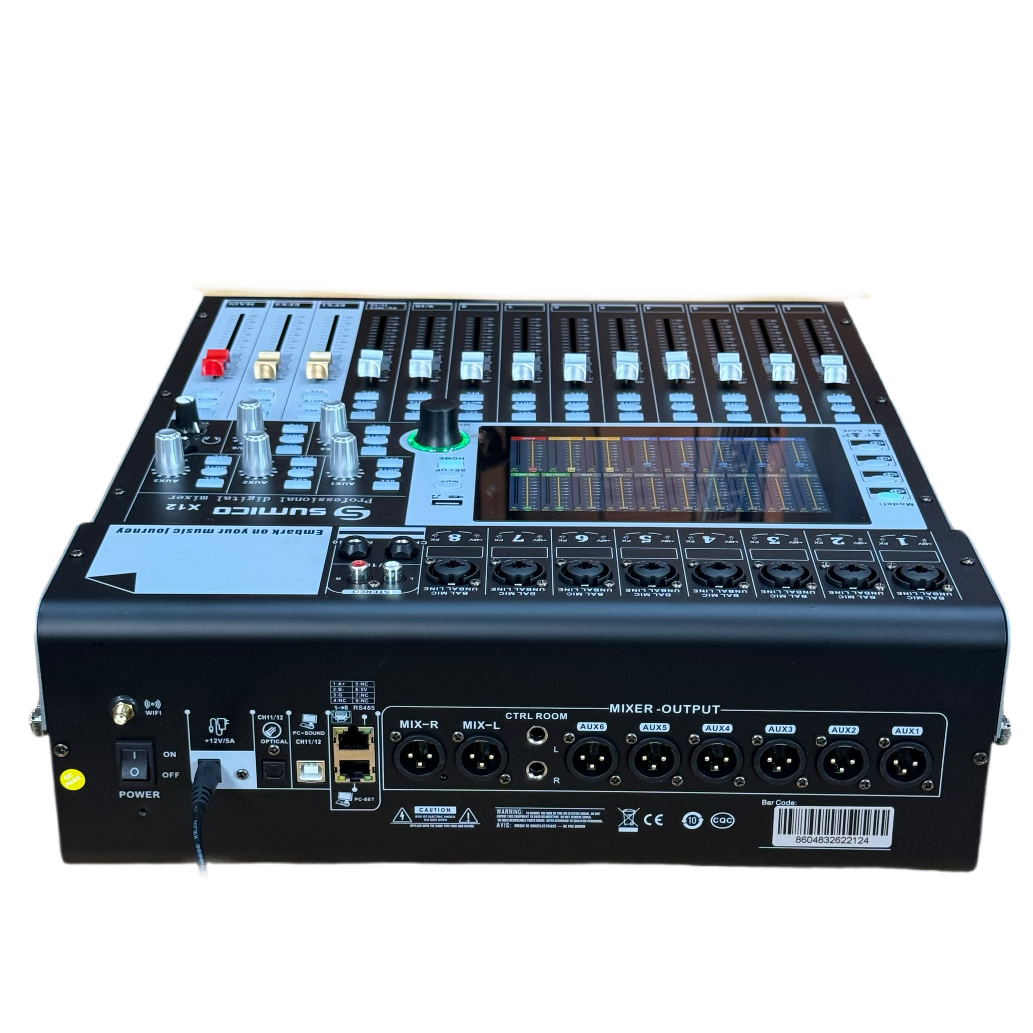 Mixer Digital Sumico X12 xử lý 12 kênh đầu vào và 9 kênh đầu ra, 16 chế độ hiệu ứng tùy chọn thiết lập và sao lưu, tích hợp Soundcard kết nối phát nhạc từ Tivi qua cổng Optical và máy tính qua cổng USB-B cùng tính năng ghi âm USB và phát nhạc từ USB, kết nối Bluetooth…Giao diện điều khiển Analog và Digital kết hợp màn hình cảm ứng màu cùng trình duyệt điều khiển từ xa qua Tablet, máy tính...kết nối Wi-Fi được thiết kế khoa học và tối giản, dễ tiếp cận ngay cả với người dùng phổ thông. Mixer Digital tinh gọn hiệu suất cao cho hệ thống âm thanh chuyên nghiệp biểu diễn sân khấu, hệ thống âm thanh karaoke cao cấp, phòng thu, phòng họp, hệ thống truyền phát thanh công cộng...