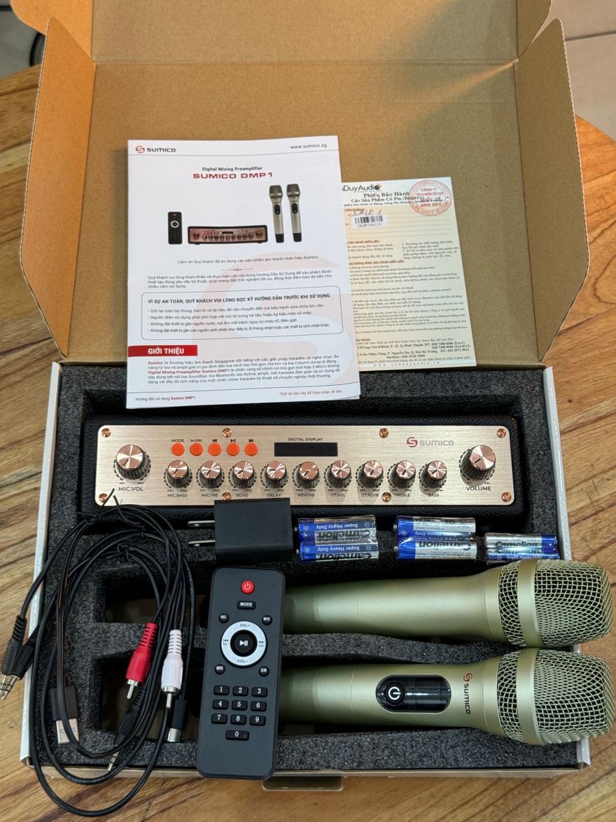 Digital Mixing Preamplifier Sumico DMP1 là vang số chỉnh cơ tích hợp Micro không dây được thiết kế với tiêu chí hướng tới người dùng có yêu cầu cao về chất lượng âm thanh. Sản phẩm có đầy đủ tính năng cho nhu cầu giải trí tại gia và di động: nghe nhạc, xem phim, hát Karaoke, chơi đàn Guitar hay các nhạc cụ khác. Thật tuyệt vời là bạn có thể sử dụng Sumico DMP1 kết nối ampli, hoặc loa Active chuyên nghiệp dùng cho các buổi tiệc, picnic, sự kiện, hội thảo và giảng dạy.